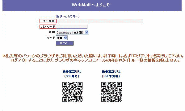 - ウェブメールのログインで入力していただくユーザー名は通常のものとは、異なりますので、以下のご説明をよくお読みください。